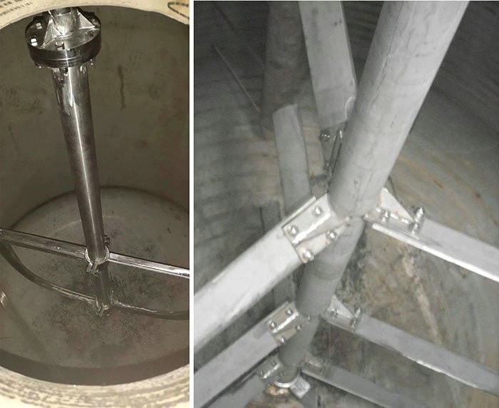 常規的攪拌形式有錨式、槳式、渦輪式、推進式、框式等,攪拌裝置在高徑比較大時,可用多層攪拌槳,特殊產品甚至會使用較為復雜的MIG式攪拌。