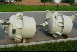 二種:Oblation纏繞工藝方法,利用玻璃鋼材料,具有一定的柔順性質(zhì),在生產(chǎn)車間里先纏繞成PPH聚丙烯異型設(shè)備殼體以后,在橫向上施加以一定的壓力裝上卡車運輸?shù)绞褂霉さ兀缓笤倩謴?fù)到原來的圓柱外形,然后再裝配成所設(shè)計的特大型玻璃鋼PPH聚丙烯異型設(shè)備。